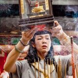 ↑ 煙霧瀰漫的豆腐工廠,工作人員全副武裝地悉心製作豆皮。黃豆的食安問題無所不在,除了有賴政府把關,消費者也該善盡監督之責。