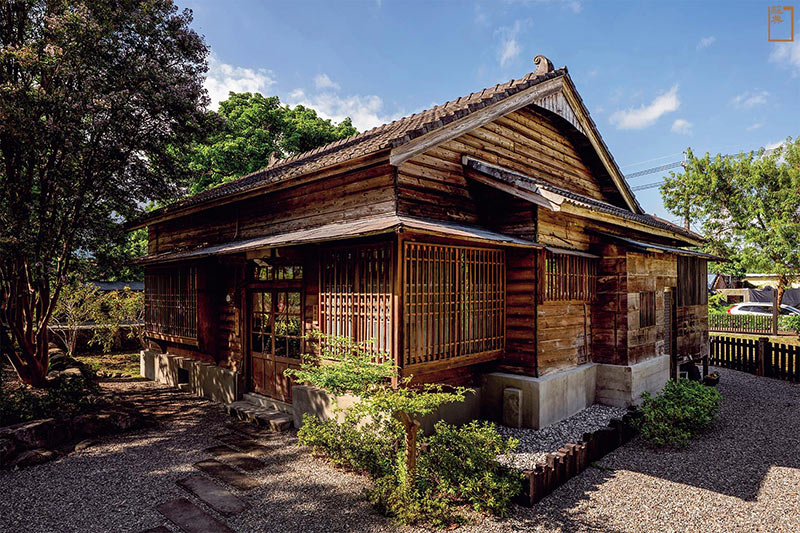 離開藝術館、沿著小徑走進福原村,一棟覆著黑瓦的日式老屋再度將訪客的想像拉回日治時代。屋脊破風斜緩低垂,外觀樸素典雅;立面上,魚鱗板與木隔窗整齊排列。推開鑲有彈珠飾紋的木柵門走入庭院,唐竹與七里香圍成綠籬;石燈籠旁一株紫薇高聳挺立,勾勒出旅人初到蔣勳書房的第一印象。
