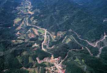 「習慣了啦!我們從小就跟這些灰撲撲的軍營,還有藏在地底下的彈藥庫住在一起。」曾新蔘是桃園縣在地文史研究學會的成員,對於龍潭這種全台罕見、軍事基地高度集中的現象,他見怪不怪之餘,也表示︰「我想一來是龍潭屬於桃園台地的一部分,地勢較高、鄰近台北,有居高臨下、衛戍首都的功能;二來是龍潭地廣人稀,土地取得容易,所以,才有這麼多的軍事設施集中在一起。」 不過龍潭地區籠罩在台三線上的軍事氛圍,還不只是道路兩旁的機關而已;包括道路本身,很多當過兵的人都知道,早年連接中壢到豐原、也就是在這裡被稱為中豐公路的台三線,即是一條始建於日本時代的戰備道。 「從作戰的角度而言,台三線是所謂的『最後確保線』;也就是說,當敵軍從海上登陸後,一定會往東邊進犯、壓迫,這時,要是位於平原的台一線被炸毀,深處內地的台三線,就成了唯一能承擔重任,提供戰車行走的機動道路了。一位不願具名的國防部軍官解釋道。 因其如此,台三線做為一條軍事用道,早在清代末葉(一八七四年左右),沈葆楨因「開山撫番」之需,便已開闢了幾條軍用道路;在那之後,誠如前述,日本人在太平洋戰爭時期,為防範台一線遭美軍轟炸,癱瘓陸路補給線,於是興建了中豐公路。 而除了中、北部的中豐公路外,日軍同時也在南部雲林、嘉義之間的台三線上,建造另一條「澐密戰道」;這個戰略構想,在光復後,更被老總統蔣介石發揮得淋漓盡致,不僅曾將重兵,由北而南駐紮在台三線上,從至今矗立在澐密戰道旁的紀念碑可知,民國五十年後,重新修闢的澐密戰道,海拔高達八百公尺的地理位置,沿途森林密布,使形勢更為隱密險要,不但可駐防十萬大軍,更可俯瞰護衛整個嘉南平原。