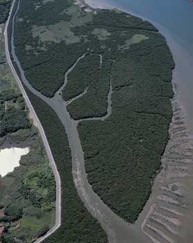 | 淡水河口的紅樹林區,範圍包括竹圍、挖仔尾、社子及關渡,總面積超過六十公頃,是目前全台位置最北、占地最廣的水筆仔純林。位在淡水河與基隆河交會處的關渡,近幾年面積已擴展到數十公頃。 |
