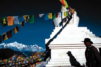 卡瓦格博雪山是藏東地區最為著名的神山,無數藏民因其巍峨險峻的山形,以及神奇的古老傳說,而心神嚮往。每天都有藏民在遠處眺望神山,懷著虔誠之心進行朝拜。