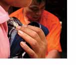 晶孟(Zing Meng)從朋友口中得知慈濟的義診。她歷盡艱難,抱著一歲多的孩子從緬甸潛入馬國欲尋找丈夫,但事與願違,第一次出現在義診中心時,就忍不住對著志工抱頭痛哭,直嚷活不下去。幾經志工耐心陪伴安慰,並答應透過難民組織管道協助,心情才得以釋懷。幾個月後,經過志工與難民組織領袖的審核勘察過程中,她才尋回丈夫,原來丈夫在雪蘭莪州的一個城鎮工作,但卻久病纏身,所幸在志工與醫師陪同下,親自載送他們,使離散已久的一家得以團聚。