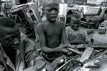 有個當童奴販子的哥哥,布尼並沒有得到特別的照應。說實在的,被賣到那裡的孩子,哪個沒有某位伯仲叔季、堂表兄長也在奈及利亞混這一行呢?布尼和其他孩子一樣,每天從早到晚工作,三餐不繼,只要動作慢或打瞌睡都會換來一陣毒打。