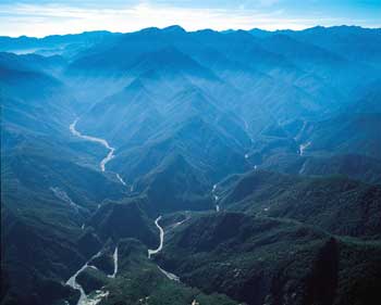 郡大溪發源自馬博拉斯山與秀姑巒山之間,如同周遭雪山與玉山山脈間的其他河川,郡大溪亦呈南北走向;在流出玉山國家公園範圍後一路往北,最後注入濁水溪。此間山勢因溪流經年切割而平緩,遠望層巒疊嶂,一脈清流蜿蜒,有若彩筆點染山水。 |