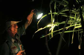 解說時正逢賞鷹季節,我便適時地對一團遊客介紹灰面鷲的南移路線,並技巧性地談到墾丁一帶捕捉伯勞鳥的現象,藉此說明地方居民在生態保育的認知上,和國家公園彼此的程度差異,當然,最大的用意,還是希望趁此機會教育,讓遊客知道保護國家公園內生態的重要性。其實,如果可以,我倒很希望能夠帶著遊客,一同拜訪墾丁國家公園警察隊後壁湖小隊,再多再簡單的解說詞彙,都比不上讓遊客在那裡親自看看公園警察查獲捕鳥工具「鳥仔踏」時震撼的心情。