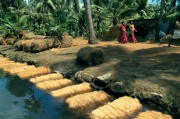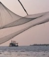 向晚的斜陽灑向阿拉伯海,三三兩兩駛向科欽(Kochi)舊城區的漁船彷彿籠罩在一片金線中,船一靠岸,船夫即俐落地將整簍的漁獲倒在漁市場的沙地上,買賣隨著此起彼落的喊價聲熱絡了起來;不遠處的沙灘散置著十來具大型的中國漁網也動工了。四角繫著四支巨木的中國漁網,形狀如浮在半空中的「金字塔」,只見七、八個壯漢合力將「金字塔」頂端的繩索往後拉,浸在水中的漁網便慢慢浮出了海面。自投羅網的漁獲雖不若主動出擊的漁船多,但「守株待魚」有如此收穫算是差強人意了。