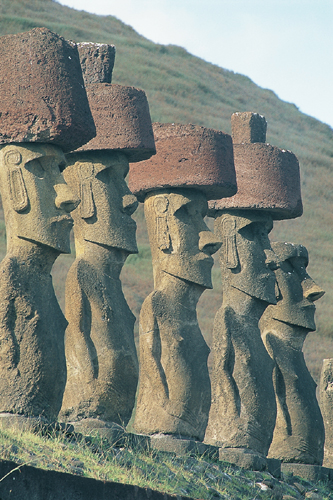 戴帽的毛伊群。究竟毛伊頭上的東西,是帽子還是髮飾或髮髻,學者專家還沒有定論,