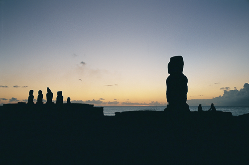 傍晚時分,兩個島民在達海(Tahai)海邊,毛伊石像下吹風聊天。一千五百年前, 他們的祖先完成一段西方探險家不敢置信的航程,來到大海中的孤島。 四、五百年前,他們又豎起這令人嘆為觀止的石像林, 但也在短短的一、二百年內毀去島上的森林。 重新豎起的毛伊石像看見一切,它看到復活節島如何從世界的肚臍淪為世界邊緣的一滴苦淚, 也將見證毀滅之後的重生。