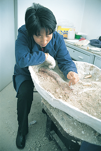 化石搬運回室內後必須先進行清理,若是為了作為展示用,那麼可以讓化石周圍保留一些泥土,