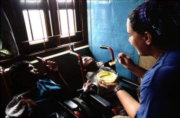 「Namaste, bhalo achen?」推著腳踏車進入家門,一位病人向我問好,和他寒暄幾句,停好單車,穿上圍裙,要開始工作了;剛從溽熱午睡醒來的病人,很多已浸浴在一床髒與濕之中,在這裡,沒有一刻是所有病人都乾爽的。我必須承認自己是個有點潔癖的人,無法想像無助地躺在排泄物裡會有多難受,所以初當義工的幾個月,非常執著地不停為病人換洗。