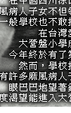 §V¤O±Ã²æ°¾y¯O¦L ¤G¤Q¤T·³ªº¤ò¤ì°ò¡A¬O¤»¦~¯Åªº¦Ñ¤jô¡A¥L¤]¬O¤jÀç½L²Ä¤@©¡ªº¤¤½ù¥Í¡C ÄÝ©ó®IÀYW·F«¬ªº¤ò¤ì°ò¡A¦b®a¤¤¤»Ó«Ä¤l±Æ¦æ²Ä¤¡C¤ì°òªí¥Ü¡A¦]¬°¨S¤å¤Æ¤S¨S¨¤À¡A³Â·§øªº«C¦~°ß¤@¥~¥X¥´¤uªº¾÷·|¡A´N¬O°½°½ª¦¤W¤õ¨®¨ì¾Fªñªº¥Ì¬¥¿¤²`¤s¸Ì¥h«õ·Ñ¡A¥L¥H¬°¦Û¤vªº¥¼¨Ó¡A±N¥Ã»·®I¦b·tµL¤Ñ¤éªºÄq§|¸Ì¡A¨S·Q¨ì¥L¸ò¥¬³£¤@¼Ë¡A³QºÂ¿ïu«C®q¾°V¡AÅܦ¨¥L©R¹BªºÂà±ÊÂI¡C ¤@ÃäŪ®Ñ¡A¤@Ãä¦b¾Ç®Õ¾á¥ô¾¤u¡A¤é«e¡A¸Ü¤£¦hªº¤ì°òˬO·F¤F¤@¥óÅF°Ê®Õ¶éªº¨Æ¡C¥L®¨®¨¦¨¿Ë¤F¡A¤÷¥À¥Î¥|¤d¤¸ªº¸uª÷¡A¬°¥L¡u¶R¡v¨Ó¤@¦ì©d¤l¡A¤]´À®a¸Ì¡u¶R¡v¨Ó¤@ӳҰʤO¡A¤j®a³£¤£ª¾¹D¡Aª½¨ìµ²±B·í¤Ñ¡A¥L¦V¾Ç®Õ½Ð°²¡A¤j®a¤~ª¾¹D¥Lnµ²±B¤F¡A¤Q¤C·³ªº·s®Q³º¬O¤jÀç½L¤p¾Ç¥|¦~¯Åªº¾Ç¥Í¡C ¤ì°ò°ù¿Ë¨Æ¥ó¡A¾Ç¥Íij½×¯É¯É¡A¾Ç®Õ¬°¦¹²M¬d¾Ç¥Í±B«Ãª¬ªp¡Aµo²{¾Ç¥Íq¿Ëªº¤£¤Ö¡A§ø¥Á°£¤F¦±B¦P®É¿Ë±¶¡¬Û¤¬¶ù°ùªº¤]¤£¤Ö¡A¥O¤H¼~¼{¡C¬°¤F½T«O¾Ç¥Í±M¤ß¾Ç²ß¡A¾Ç®Õ°£¤F½Ð¨Ó®aªø·¾³q¥~¡A³Ì«á¨Ã¨î©w¡u¤ì°ò±ø´Ú¡v¡A¸T¤î¦b®Õ¥Í½×¤Î±B¶ù¡C ¤Q¤K·³ªºªü³Q©Ô¥B¬O¤»¦~¯Åªº¯Zªø¡A±q¤p¤G®É´N¤@ª½¾á¥ô¯Zªø¡A¡u¯Zªø¡vÅܦ¨¤F¥Lªººï¸¹¡C¥Í¦b³Â·§ø¡A©Ô¥B±q¤¤»·³®É´N¶}©l©ñ¦Ï¡A¬°¥Í¬¡©bªi¡AÀ´¨Æ«á¡A¥Lº¥º¥¤F¸Ñ¨ì³Â·§ø«Ä¤lªº´d«s¡A§O¤H°d½|¥L̬O¡uÄî¤l«½¡v®É¡A¥L·|¤£¥Ì¥Ü®z¦^½|¡A¬Æ¦Ü©M¤H¥´¬[¡C ªü³Q©Ô¥B¦Ü¤µ³Ì²`¨èªº°O¾Ð¬O¡AÂA¤Ö¦³¤HÄ@·N½ñ¶i³Â·§ø¡A©ó¬O¦³¬r¥Ç§Q¥Î³Â·§ø§@¬°«Ì»Ù¡A¤j·d¨«¨p¹B¬rªº¤Ä·í¡A¦ý¤@ª½¨S¤H´¡¤âºÞ¡Aª½¨ì¤@¤Ñ¡A¤@Ó¤U¤j«Bªº²M±á¡A¥L¤@ı¿ô¨Ó¡Aµo²{º¡¤s¹M³¥¡A¤H¼v¼l¼l¡A³£¬O¬ïµÛ«B¦ç¡A²üºj¹ê¼uªº¤½¦w¡C ¨º¬O²Ä¤@¦¸¦³¤½¦w¶i¤J³Â·§ø¡A°£¤F¤j³W¼Ò·j¤s¤S®Á®a®Á¤á§ì¡u¶ûºÃ¥Ç¡v¡A¦~»´§§¤BµL¤HƧK¡A¥ú¤@¡B¤G²Õ´N§ì¨«¥|¤Q´X¤H¡A¤½¦w¥Î÷¤l¤@®¹¡A¦ê¦¨ªøÀs¡A§â¤H©ã¦^¤½¦w§½¼f°T¡A©Ô¥Bªº¨â¦ìôô¤]¦b¨ä¤¤¡C ¥Ø¸@¾ãӨƥóÅýªü¥B¾_¾Ù¤£¤w¡A¥L»¡¡G¡u§Úªº¨âÓôô¬O¤åª¼¡A¥»¨Ó½Õ¬d«áµo²{¥L̬OµL¶dªº¦´N¥i¥H¶½¦^¤F¡A«o¦]¬°³s¦Û¤vªº¦W¦r³£¼g¤£°_¡A©Ò¥H³Q¦hÃö¤F´X¤Ñ¡A³Ì«áÁÙ¬O§ä§O¤H¥Nñ¦W¡A¤~±o¥HÄÀ©ñ¡v¡A¤]¦]¦¹¡A·í¤jÀç½L¤p¾Ç²Ä¤@¦¸««Ø®É¡A¥L¦b¼x¨D¤÷¿Ë¦P·N¤U§â¤Q¤»°¦¦Ï½æ¤F¡A¥L»¡¡G¡u§Ú¤£n©ñ¦Ï¡A§ÚnŪ®Ñ¡v¡C ~§ó¦h¸Ô²Ó¤º®e½Ð°Ñ¾\¸g¨åÂø»x~